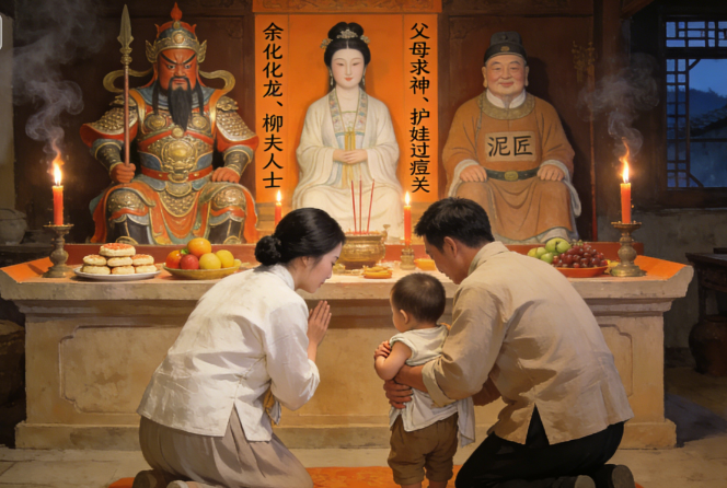 古人对痘神的态度,那叫一个又怕又敬。家里有孩子出痘,就摆上供品磕头祷告,希望痘神手下留情。有的地方供余化龙一家,盼着他们少降痘毒;有的地方供柳夫人,觉得女仙更心疼孩子;福州人则连郑高都供着,生怕怠慢了任何一位“可能管用”的神明。
