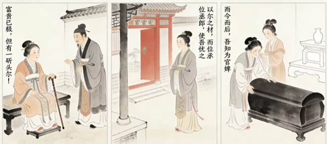 高颎之母、潘孟阳之母和严武之母的告诫,充满了对富贵的警惕。高颎之母“富贵已极,但有一斫头尔”的警告,直接点破了权力的危险;潘孟阳之母担忧儿子 “才不配位”,体现了对现实的清醒认知;严武之母在儿子去世后庆幸“免为官婢”,则揭示了官场对女性家属的压迫。这些母亲的忧患意识,本质上是对家族命运的守护,可惜高颎最终还是未能逃脱杀身之祸。